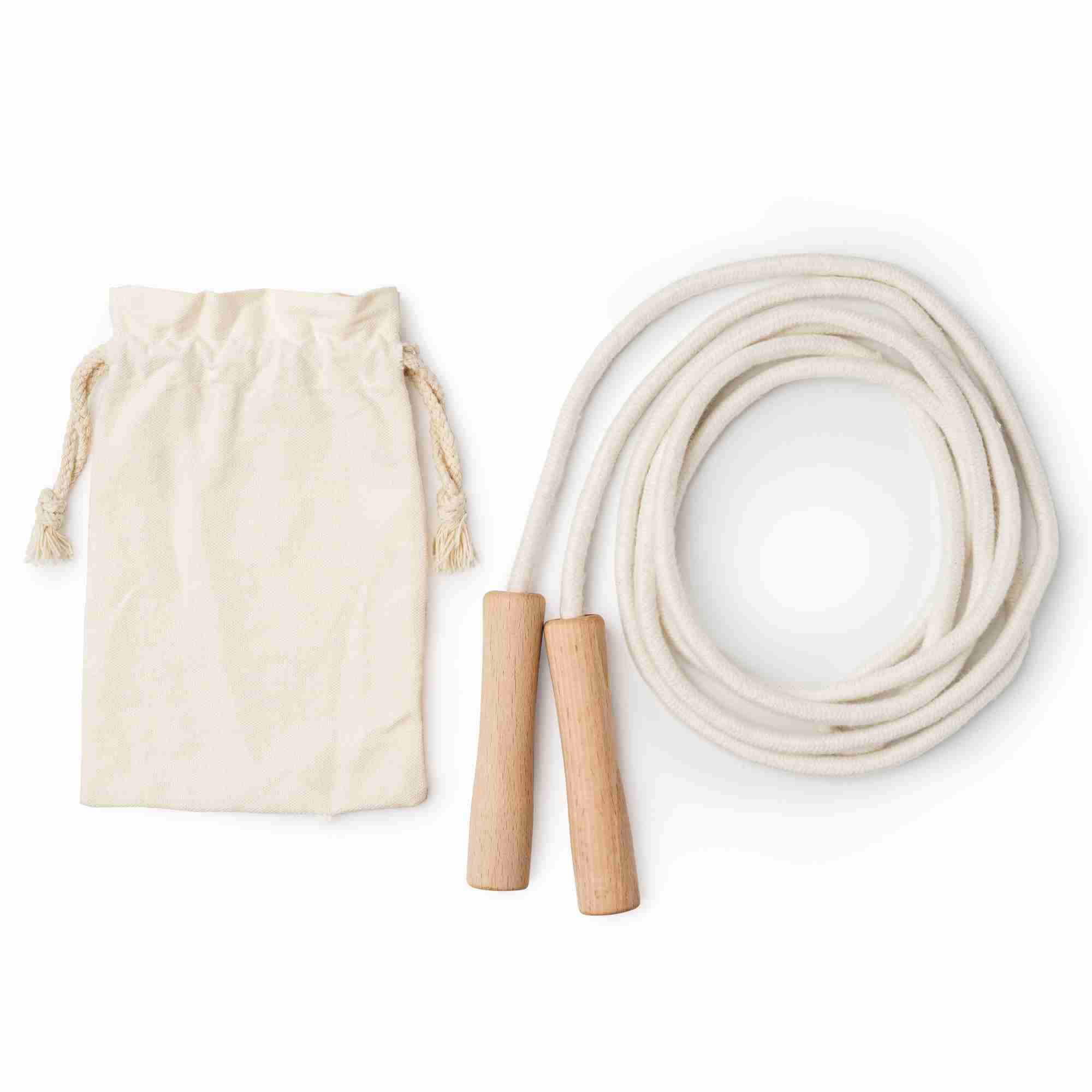 Diviértete con esta comba realizada en algodón de 280 cm y mangos de madera lisos para un agarre más cómodo. Entrena y mantente en forma.