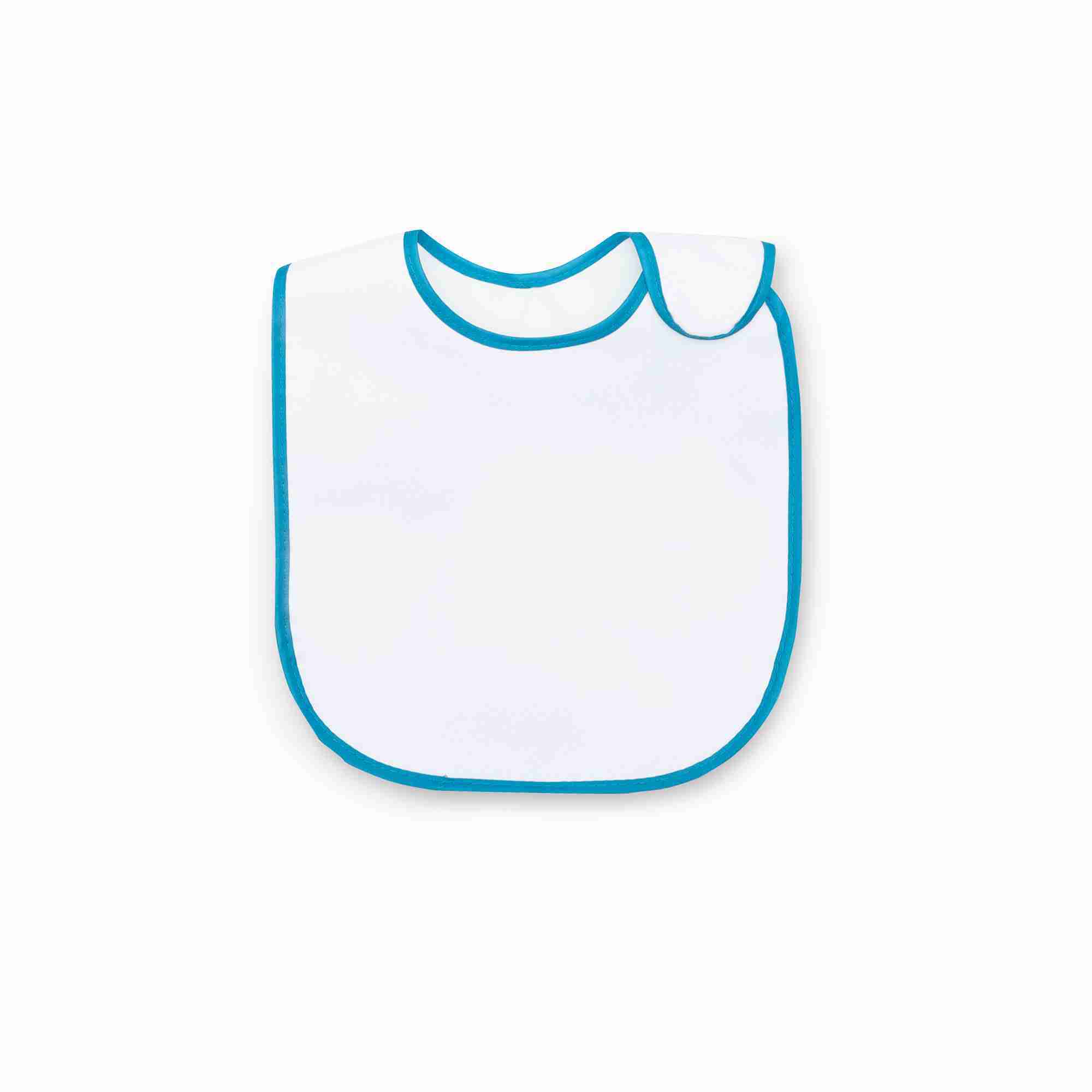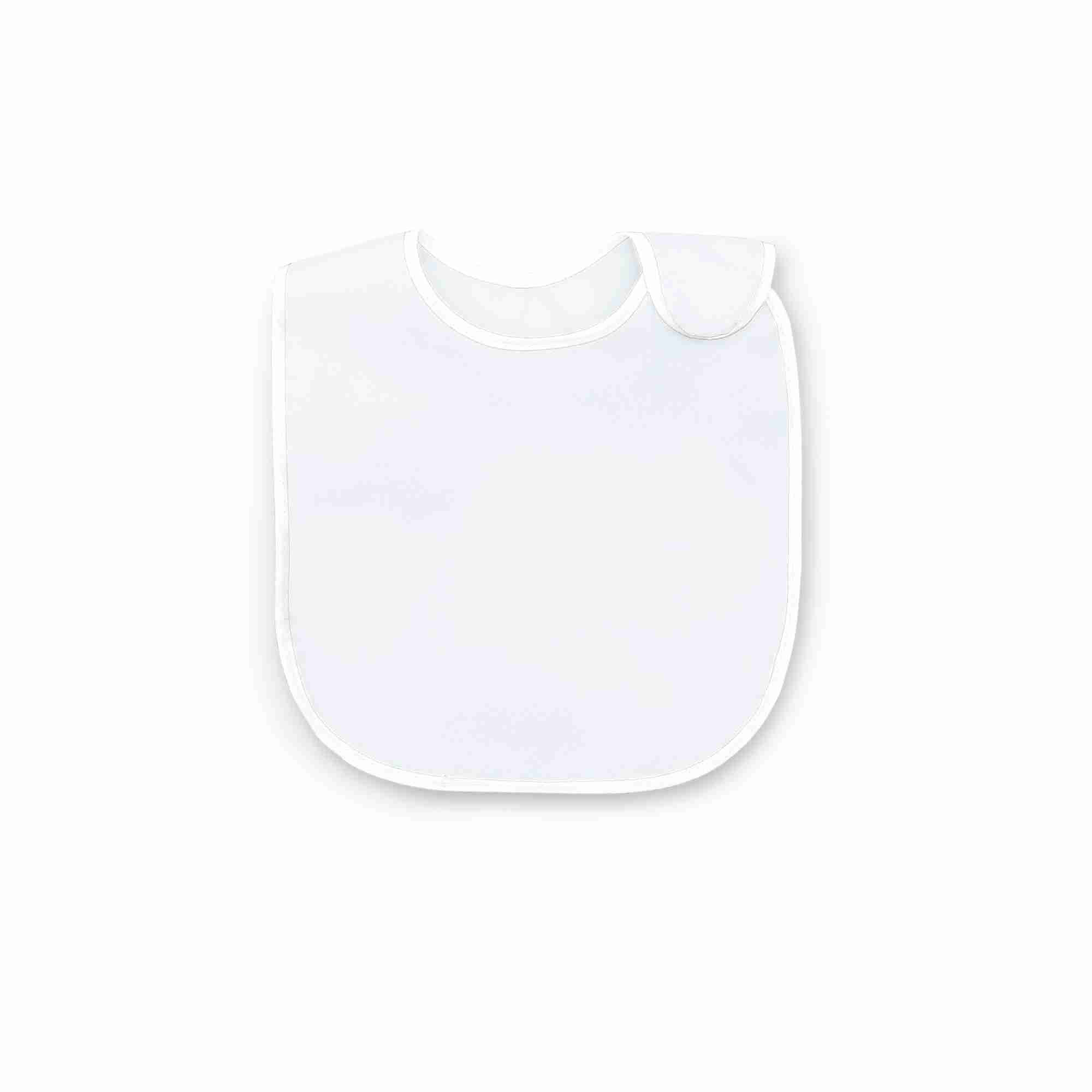 Babero viveado. Tejido de algodón por la parte delantera y de plástico por la parte posterior para evitar el traspaso de líquidos. Cierre lateral de velcro suave.