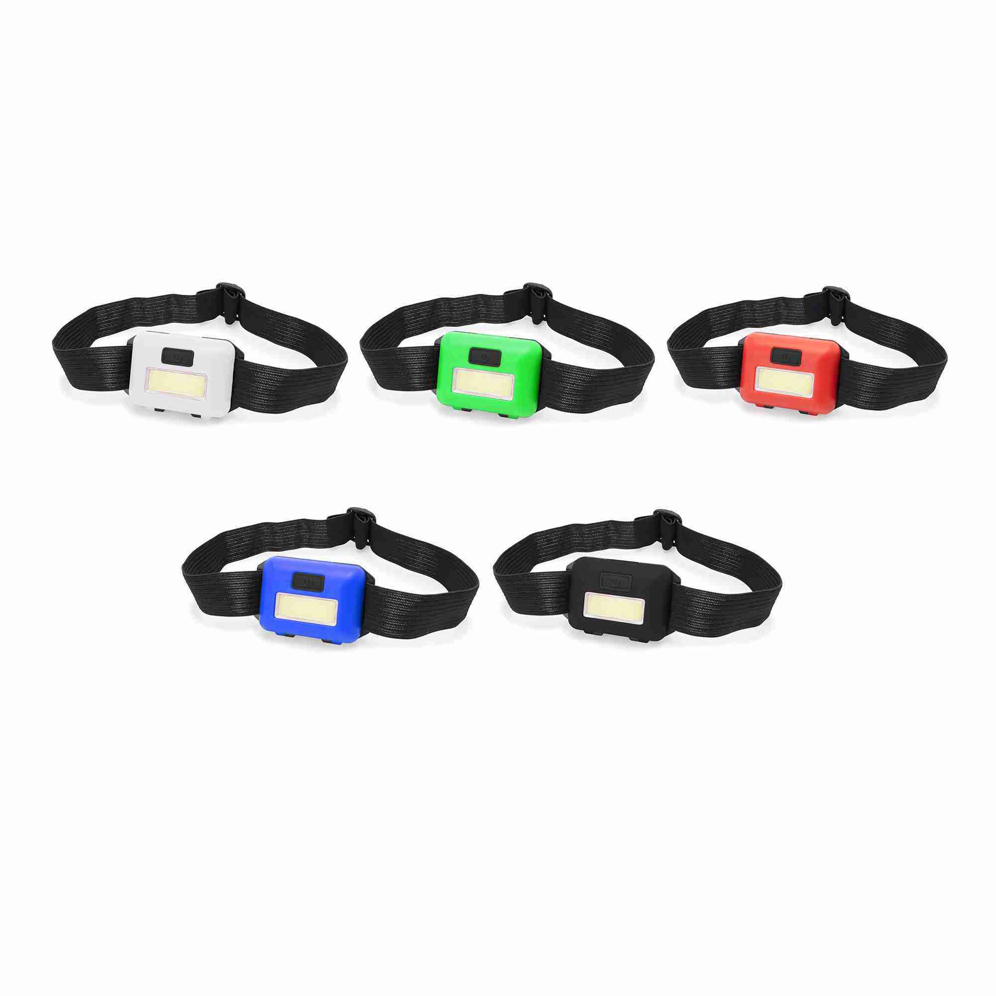 Linterna deportiva con cinta para ajuste multiusos. 8 luces LED COB con 3 modos de iluminación (2 directos + 1 parpadeo). Funcionamiento con 3 Pilas AAA (no incluidas).